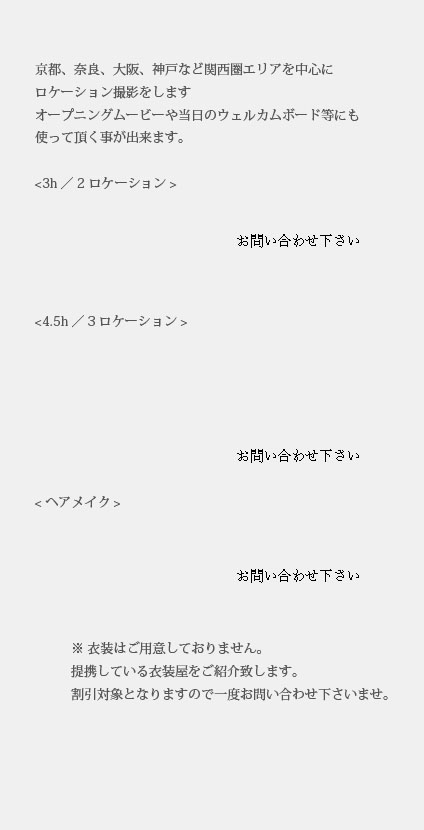 - A、撮影の前日までにご入金となります。ご入金の時点で