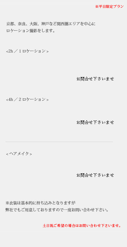 - A、撮影の前日までにご入金となります。ご入金の時点で